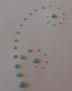 Ok now squeaze a tad more to create the size pearl you want but be close to your material...as the pearl gets bigger yo want the bottom of the pearl to start touching the material...carry on until pearl is at preferred size...do NOT release pressure on the pen or you will just suck the pearl back in, just stop squeazing the tube, gently rotate the pen to smooth the top of the pearl and lift the pen away slowly...then release the pressure